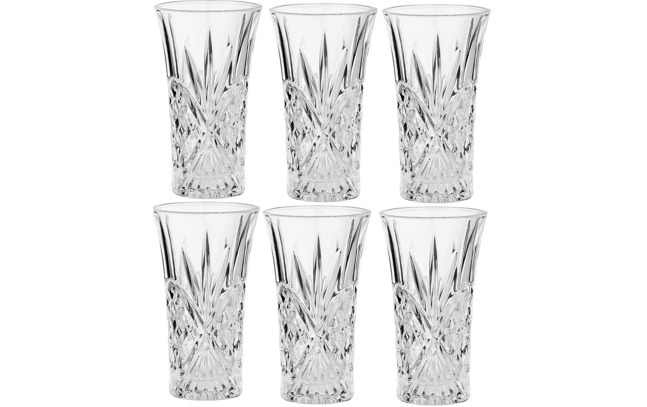 Material: Glas, Höhe: 9 cm, Volumen: 50 ml, Glas Typ: Schnapsglas, Verpackungseinheit: 6 Stück, Detailfarbe: Transparent